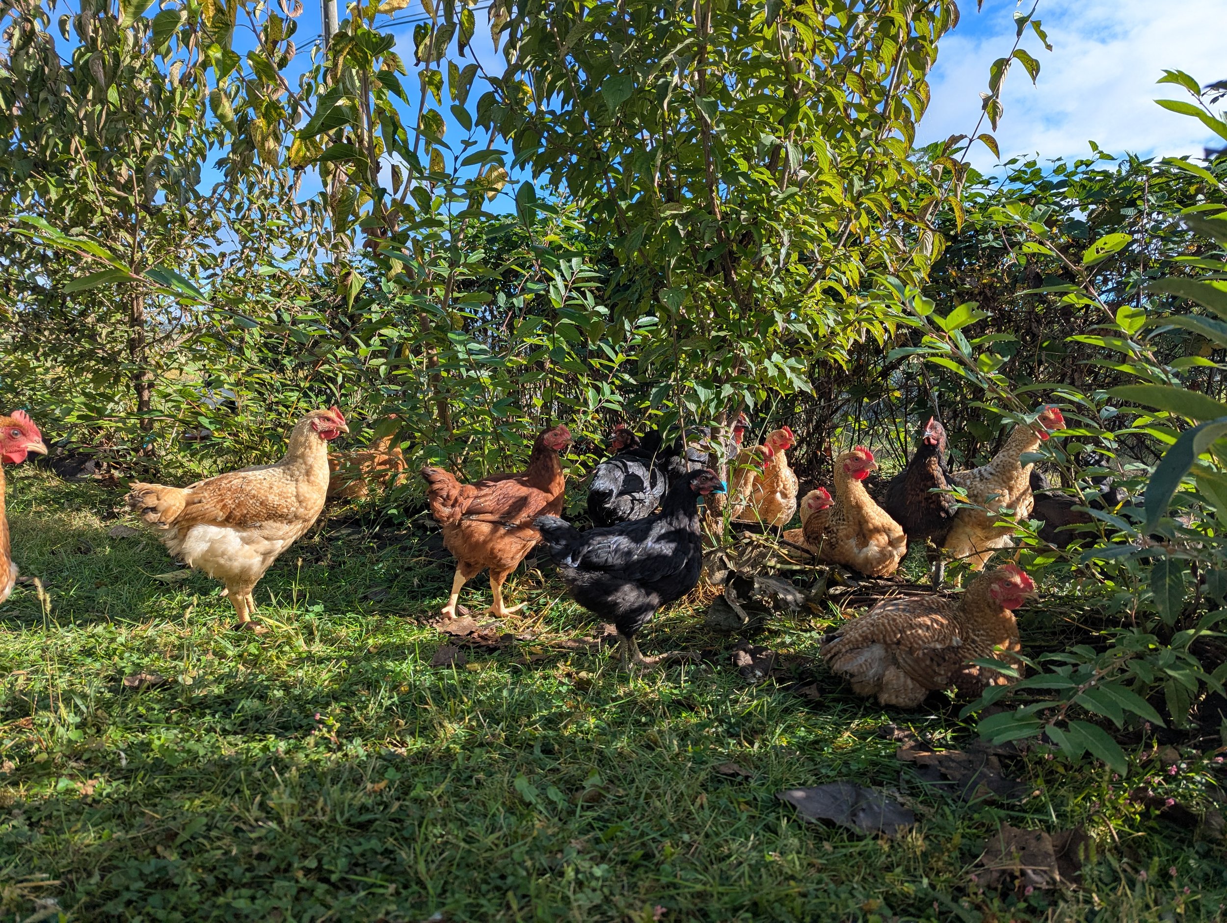 Greene Kitchen Farm in Bloomsburg, Pennsylvania was awarded a Fund-a-Farmer grant to research the viability of using mulberry fruits as feed for chickens, using various feed ratios to learn if there are significant drawbacks to including mulberry fruits as large portions of chicken diets.